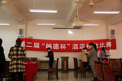 12月17日上午,由纳德酒店股份有限公司冠名赞助的第二届“纳德杯”酒店技能比赛暨2015年浙江省高职高专院校技能大赛“中餐主题宴会设计”赛项选拔赛在实训楼北303中餐厅模拟实训室顺利举办。此次比赛由我院管理系主办,酒店管理教研室承办,比赛奖品由纳德酒店股份有限公司赞助。