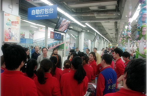 2012年4月13日下午,我院教务处王海慧副处长、校企合作处张敬伟处长、楼望老师、商务系李庆海主任以及两位实习指导老师,共同赴沃尔玛杭州黄龙店检查学生顶岗实习工作,看望同学们。在公司人力资源经理陪同下,逐一到实习学生所在的各个部门看望实习同学,了解实习情况。