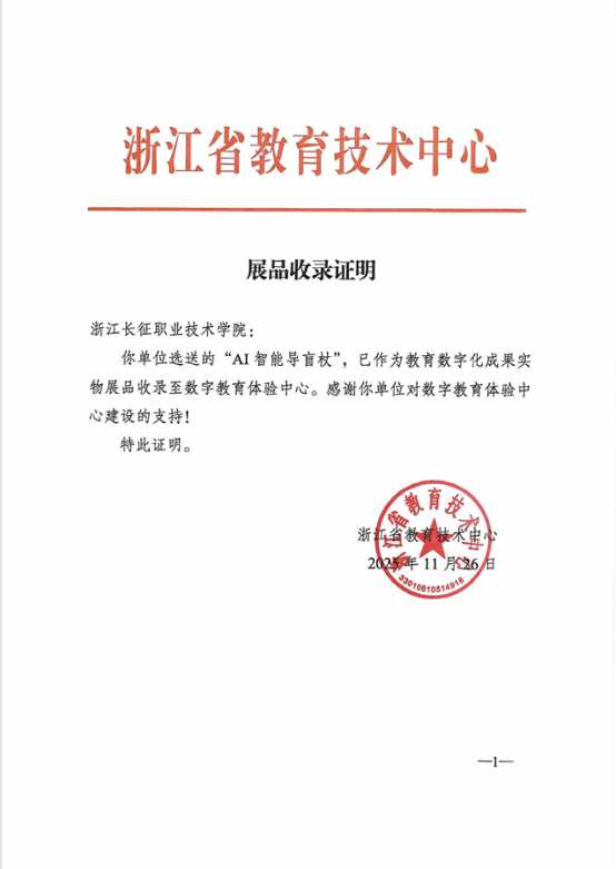 近日,我校自主研发的“AI智能导盲杖”与“无线充电智能小车”两项教学成果,被浙江省教育技术中心正式收录为数字教育体验中心实物展品,这是对我校在人工智能、智能硬件领域教学实践成效的认可。