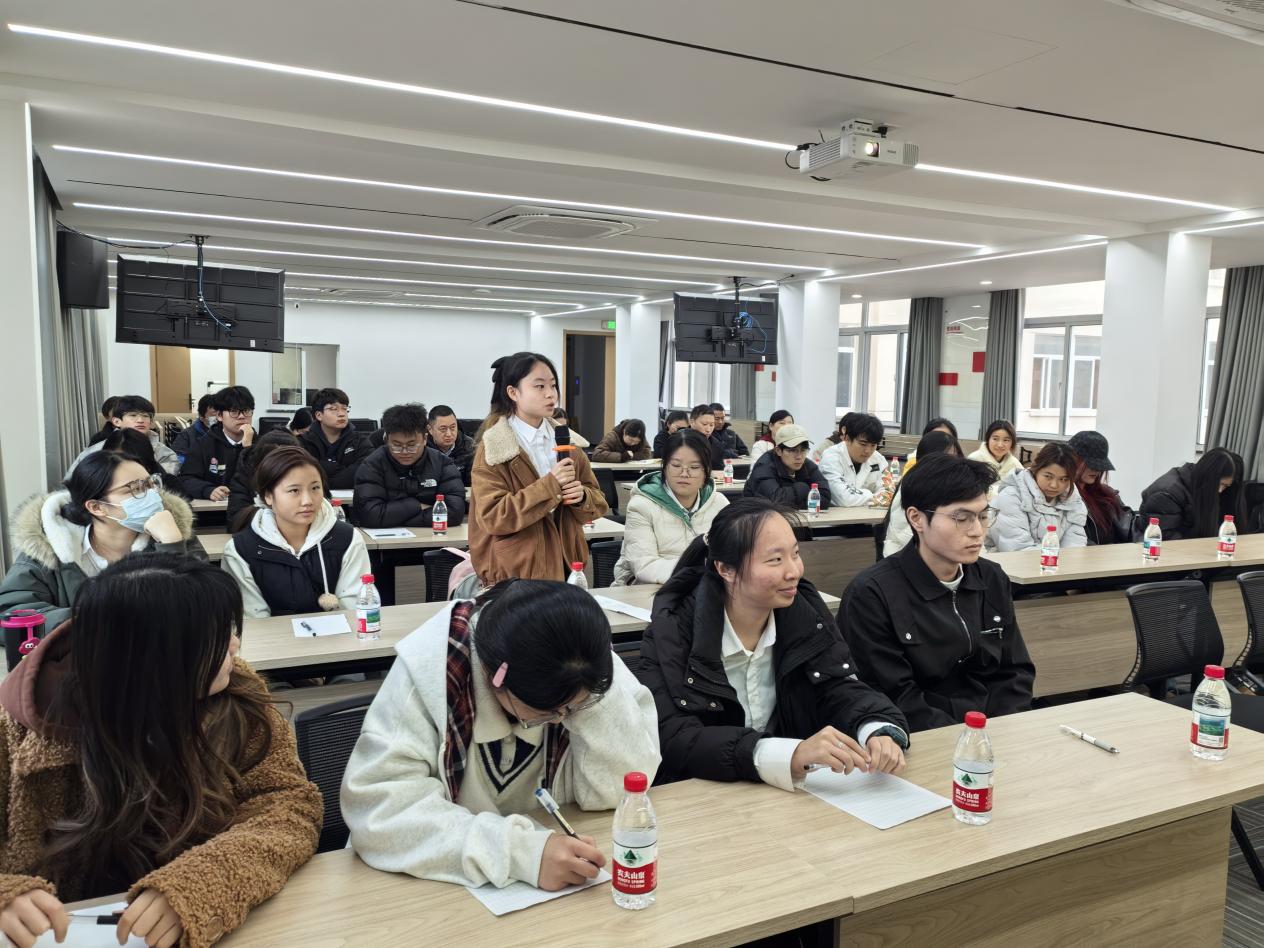 浙江工业大学理论宣讲员李亚珊以留下1129社区为样本,从居民身边的真实变化切入,将弘扬优秀传统文化、夯实民生基础等国家政策部署,与社区宋韵文化建设、民生服务提升等实践相结合,让抽象的政策理念变得具象可感、通俗易懂。同时,李亚珊还结合“十四五”成果与“十五五”规划,清晰阐释国家战略与个人成长的关联,引导全体师生认识到把握发展大势的重要性。