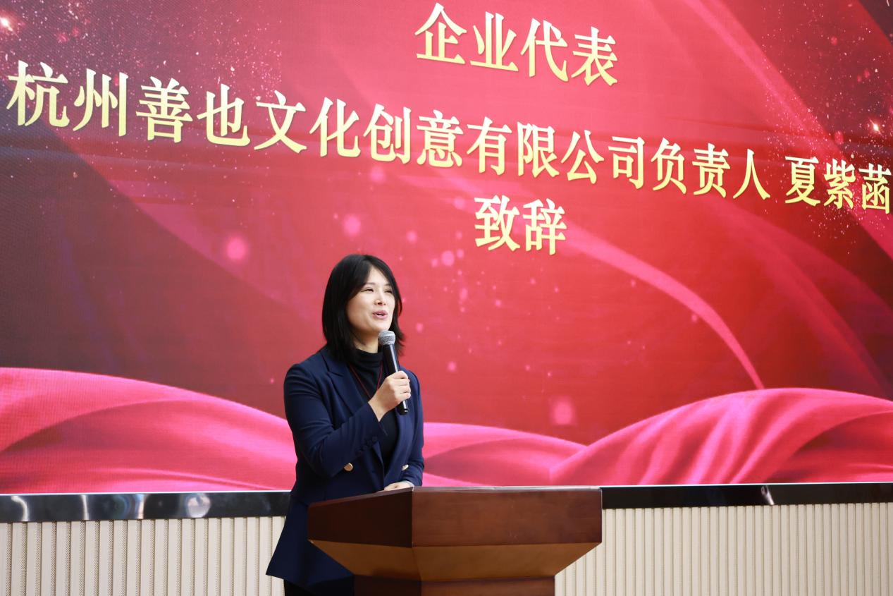会上,浙江省文化创意产业协会秘书长周卫中、浙江长征职业技术学院副校长冯新红、杭州善也文化创意有限公司负责人夏紫菡分别致辞。