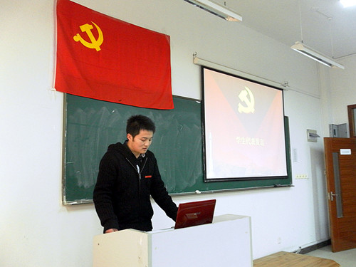 为更好发挥党员的先锋模范作用,明确党员的角色定位,增强党员意识,计信系于2012年2月29日下午2.30时,在学院实训楼北408教室举行了“党员佩戴党徽、重温入党誓词”活动仪式。计信系党总支书记杨军,总支委员黄华、徐静、高兴媛、吴少俊及全体教师党员和学生党员参加会议。会议由总支委员徐静老师主持。