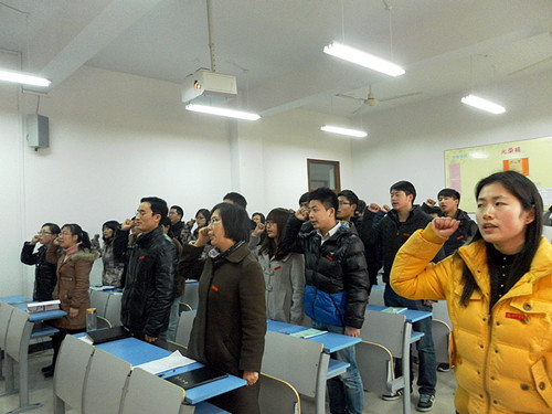 最后,全体党员面对党旗举起右手在吴少俊老师领誓下进行了庄严的宣誓。这次活动的开展进一步强化了党员的先进意识、宗旨意识、责任意识、和光荣意识。必将促进党员在平时的工作、学习、生活中起先锋模范作用,树立良好形象。